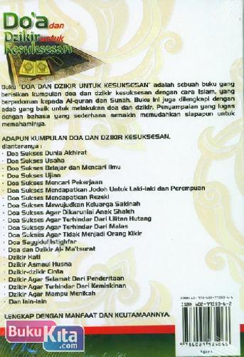 Buku DOA DAN DZIKIR UNTUK KESUKSESAN adalah sebuah buku yang berisikan kumpulan doa dan dzikir kesuksesan dengan cara Islam, yang berpedoman kepada Al-quran dan Sunah. Buku ini juga dilengkapi dengan adab yang baik untuk melakukan doa dan dzikir. Penyampaian yang lugas dengan bahasa yang sederhana semakin memudahkan siapapun untuk memahaminya.