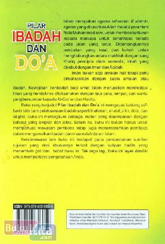 Buku yang berjudul Pilar Ibadah dan do'a mengupas tentang alifba-ta tata cara pelaksanaan ibadah seperti thaharah, shalat, zikir, do'a, dan bahasa yang singkat dan jelas. Selain itu, buku ini bukan hanya untuk memperluas wawasan pembaca tetapi juga menenteramkan pembaca dalam mengamalkan ibadah dan muamalah dalam Islam.