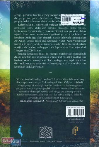 Dalam buku ini, konsep utuh mukjizat dipaparkan dalam konteks pemikiran Islam. Mulai dari dimensi ontologis, esensi, realitas, keniscayaan, karakteristik, fenomena, dimensi dan posisinya dalam sejarah Islam, serta mekanisme signifikasinya terhadap kebenaran kenabian. Anda juga akan disuguhi ulasan cakrawala kemukjizatan Al-Qur'an, sebagai bukti atas kebenaran risalah Nabi Muhammad Saw dan tinjauan global atas kemunculan dan dinamika ilmiah subjek mukjizat dari sudut pandang para tokoh pemikiran Islam sejak abad I hingga abad XIV hijriah.