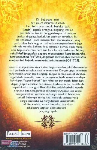 Buku ini menjelaskan secara rinci bagaimana berbakti dan memenuhi perintah tersebut secara sempurna. Dengan gaya penulisan yang mudah, lancar, dan dilengkapi dengan contoh-contoh dari berbagai kisah menarik, buku ini mengantar Anda untuk mendapat kehidupan "super berkah" dan kebaikan berlimpah dalam kehidupan. Jangan lewatkan dan nikmati buah manis dari bakti Anda kepada kedua orangtua. Benarkah kita sudah berbakti kepada orangtua kita sebgaimana semestinya?
