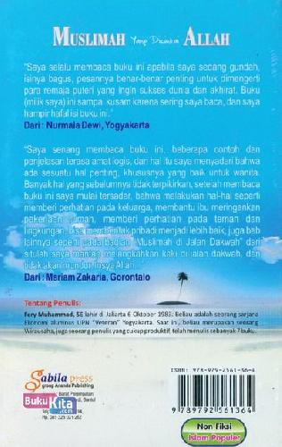 Untuk sahabat Muslimah dimanapun anda berada, buku ini dipersembahkan untuk kalian, share dari kami tentang bagaimana menjadi Muslimah yang baik, Muslimah yang dicintai Allah dan Rasul-Nya.