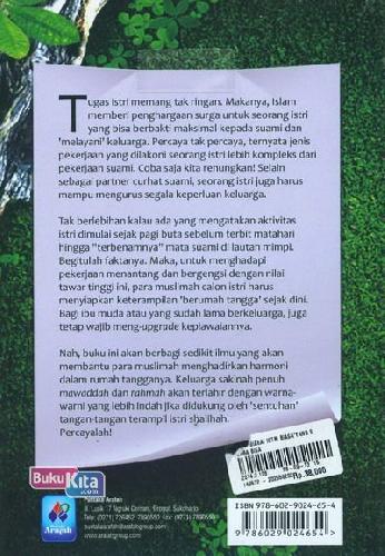 Bagi ibu muda atau yang sudah lama berkeluarga, juga tetap wajib meng-upgrade kepiawaiannya. Nah, buku ini akan berbagi sedikit ilmu yang akan membantu para muslimah menghadirkan harmoni dalam rumah tangganya. Keluarga sakinah penuh mawaddah dan rahmah akan terlahir dengan warna-warni yang lebih indah jika didukung oleh 'sentuhan' tangan-tangan terampil istri sfjalihah. Percayalah!