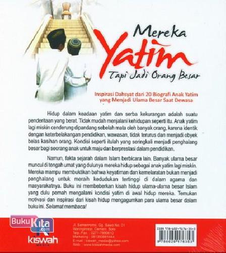 Namun, fakta sejarah dalam Islam berbicara lain. Banyak ulama besar muncul di tengah umat yang dulunya mereka hidup sebagai anak yatim lagi miskin. Mereka mampu membuktikan bahwa keyatiman dan kemelaratan bukan menjadi penghalang untuk meraih kedudukan tertinggi di dalam agama dan masyarakatnya. Buku ini membeberkan kisah hidup ulama-ulama besar Islam yang dulu pernah mengalami kondisi yatim di awal hidup mereka. Temukan motivasi dan inspirasi dari kisah hidup mengagumkan para ulama besar dalam buku ini.