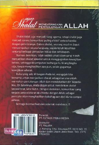 Buku yang ada di tangan Anda ini, mengajak kita bersama untuk menjadikan shalat sebagai sarana untuk memohon pertolongan Allah dan mendekatkan diri kepada-Nya. Di dalamnya, Anda diajak untuk mendirikan shalat secara total, lahir batin. Dengan demikian, komunikasi yang terjalin antara kita selaku hanba dengan Allah sebagai pencipta akan menghasilkan kebahagiaan dari dunia sampai akhirat.