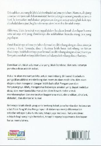Buku ini akan menuntun kita untuk menimbang diri sendiri sebelum pengadilan akhirat menimbang dan memutuskan nasib kita. Kita akan diajak untuk mengenal dengan lebih baik sifat Pengampun dan Penyayangnya Allah, mengetahui beberapa amalan yang dapat melebur dosa, dan membawa kita masuk ke alam bawah sadar untuk membayangkan dan merasakan bagaimana mati, dimandikan, dikafani, dishalati, dan diantar ke kubur.