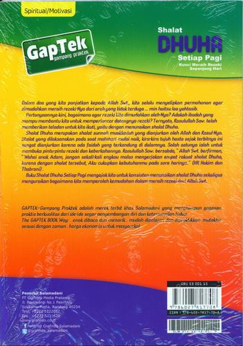 Shalat Dhuha adalah shalat sunnah muakkadah yang dianjurkan oleh Allah dan Rasul-Nya. Shalat yang dilaksanakan pada saat matahari mulai naik, kira-kira tujuh hasta sejak terbitnya ini sangat dianjurkan karena ada faedah yang terkandung didalamnya. Salah satunya adalah untuk membuka pintu-pintu rezeki dan keberkahannya. Rasulullah saw bersabda, "Allah Swt berfirman, "Wahai anak Adam, jangan sekali-kali engkau malas mengerjakan empat rakaat shalat Dhuha, karena dengan shalat tersebut, Aku cukupkan kebutuhanmu pada sore harinya." (HR Hakim dan Thabrani). Buku shalat dhuha setiap pagi ini mengajakan kita untuk konsisten menunaikan shalat dhuha sekaligus menguraikan bagaiman memperoleh kemudahan dalam meraih rezeki dari Allah swt.