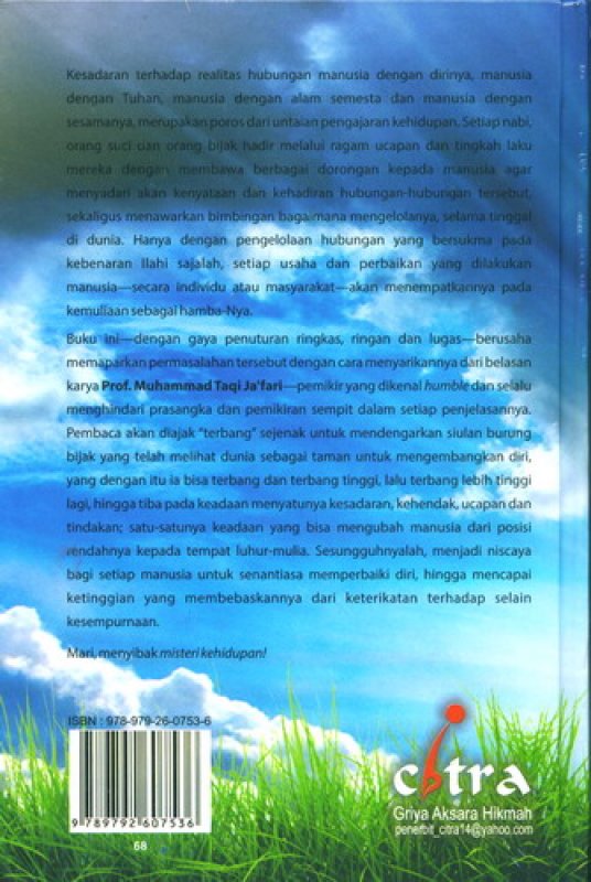Buku inidengan gaya penuturan ringkas, ringan dan lugasberusaha memaparkan permasalahan tersebut dengan cara menyarikannya dari belasan karya Prof. Muhammad Taqi Ja'faripemikir yang dikenal humble dan selalu menghindari prasangka dan pemikiran sempit dalam setiap penjelasannya. Pembaca akan diajak "terbang" sejenak untuk mendengarkan siulan burung bijak yang telah melihat dunia sebagai taman untuk mengembangkan diri, yang dengan itu ia bisa terbang dan terbang tinggi, lalu terbang lebih tinggi lagi, hingga tiba pada keadaan menyatunya kesadaran, kehendak, ucapan dan tindakan; satu-satunya keadaan yang bisa mengubah manusia dari posisi rendahnya kepada tempat luhur-mulia. Sesungguhnyalah, menjadi niscaya bagi setiap manusia untuk senantiasa memperbaiki diri, hingga mencapai ketinggian yang membebaskannya dari keterikatan terhadap selain kesempurnaan.