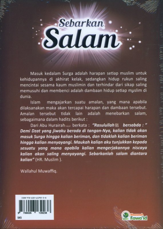Dari Abu Hurairah berkata : "Rasulullahyg bersabda : " Demi Dzat yang jiwaku berada di tangan-Nya, kalian tidak akan masuk Surga hingga kalian beriman, dan tidaklah kalian beriman hingga kalian menyayangi. Maukah kalian aku tunjukkan kepada sesuatu yang mana apabila kalian mengerjakannya niscaya kalian akan saling menyayangi. Sebarkanlah salam diantara kalian" (HR. Muslim ).