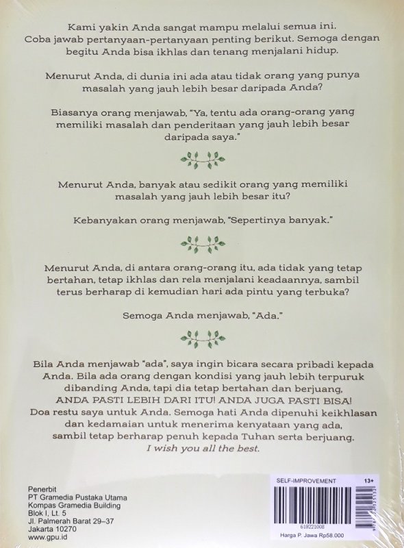 Menurut Anda, di antara orang-orang itu, ada tidak yang tetap bertahan, tetap ikhlas dan rela menjalani keadaannya, sambil terus berharap di kemudian hari ada pintu yang terbuka? Semoga Anda menjawab, "Ada."