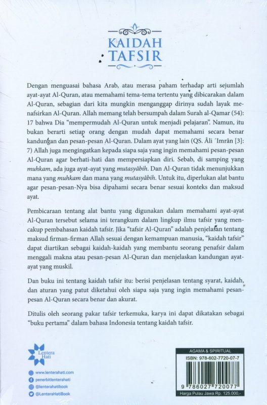 Dan buku ini tentang kaidah tafsir itu: berisi penjelasan tentang syarat, kaidah, dan aturan yang patut diketahui oleh siapa saja yang ingin memahami pesan-pesan Al-Quran secara benar dan akurat.