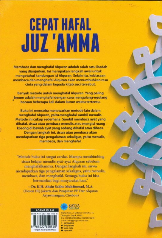 mendapatkan tiga pengalaman sekaligus, yaitu menulis, membaca, dan menghafal. Semoga buku ini bisa bermanfaat bagi masyarakat luas."