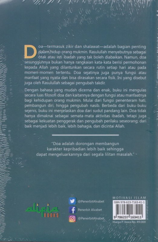 Buku ini mengulas secara luas filosofi doa dan kaitannya dengan fungsi atau manfaatnya bagi kehidupan orang mukmin. Mulai dari fungsi penenteram hati, pembangun diri, hingga pengubah nasib.