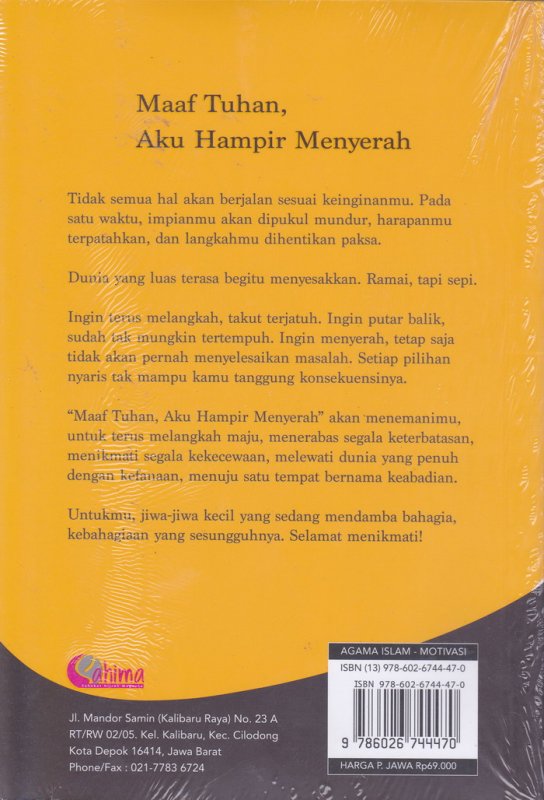"Maaf Tuhan, Aku Hampir Menyerah" akan menemanimu, untuk terus melangkah maju, menerabas segala keterbatasan, menikmati segala kekecewaan, melewati dunia yang penuh dengan kefanaan, menuju satu tempat bernama keabadian.
