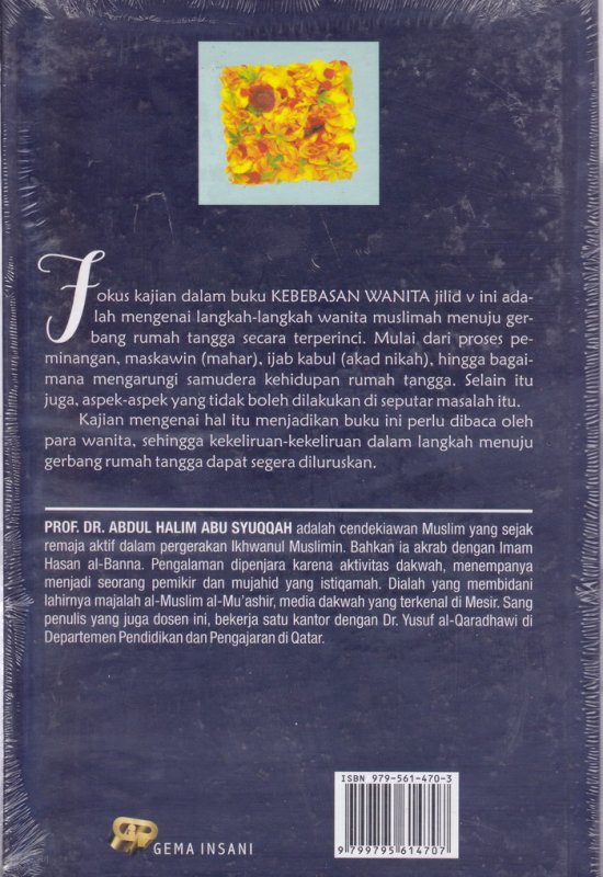 Fokus kajian dalam buku KEBEBASAN WANITA jilid v ini adalah mengenai langkah-langkah wanita muslimah menuju gerbang rumah tangga secara terperinci. Mulai dari proses peminangan, maskawin (mahar), ijab kabul (akad nikah), hingga bagai- mana mengarungi samudera kehidupan rumah tangga. Selain itu juga, aspek-aspek yang tidak boleh dilakukan di seputar masalah itu. Kajian mengenai hal itu menjadikan buku ini perlu dibaca oleh para wanita, sehingga kekeliruan-kekeliruan dalam langkah menuju gerbang rumah tangga dapat segera diluruskan.