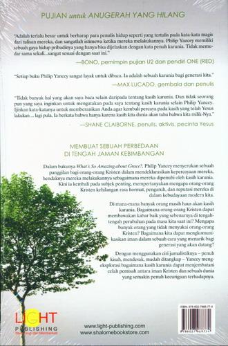 Dengan menggunakan ciri jurnalistiknya penuh kisah, mendesak, mudah ditangkap Yancey mengeksplorasi bagaimana kasih karunia dapat menjembatani celah pemisah antara iman Kristen dan sebuah dunia yang semakin penuh kecurigaan terhadapnya.
