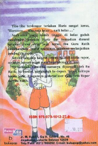 Aji terkejut. Tiba-tiba namanya dipanggil oleh Bu Ratih. Aji berdiri, melangkah ke depan. Tetapi kakinya terasa berat. Tangannya gemetar saat menerima Rapor dari Bu Ratih.