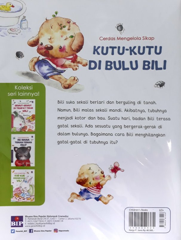 Bili adalah anjing kecil yang suka sekali main di tanah. Ia suka berlari dan berguling di tanah. Tapi Bili malas mandi. Akibatnya, tubuhnya kotor dan bau. Suatu hari Bili merasa gatal sekali. Ada sesuatu di bulunya. Kira-kira apa ya yang membuat Bili gatal? Apakah Bili berhasil menghilangkan rasa gatalnya?