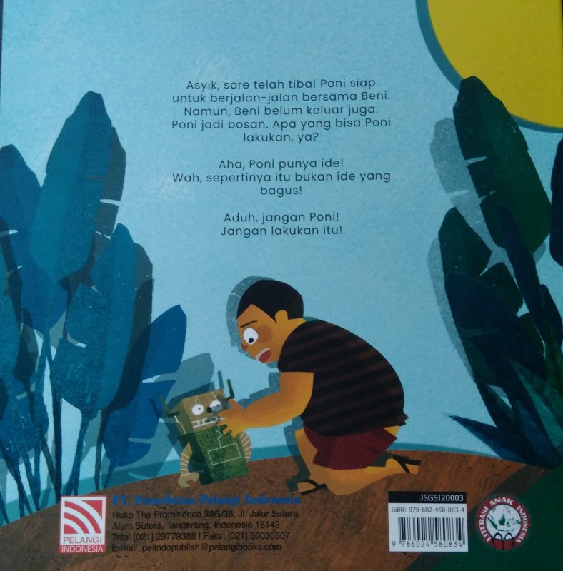 Asyik, sore telah tiba! Poni siap untuk berjalan-jalan bersama Beni. Namun, Beni belum keluar juga Poni jadi bosan. Apa yang bisa Poni lakukan, ya?