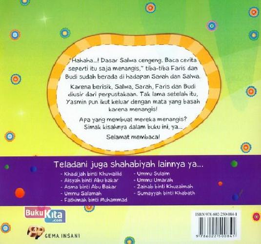 Karena berisik, Salwa, Sarah, Faris dan Budi diusir dari perpustakaan. Tak lama setelah itu, Yasmin pun ikut keluar dengan mata yang basah kerena menangis!