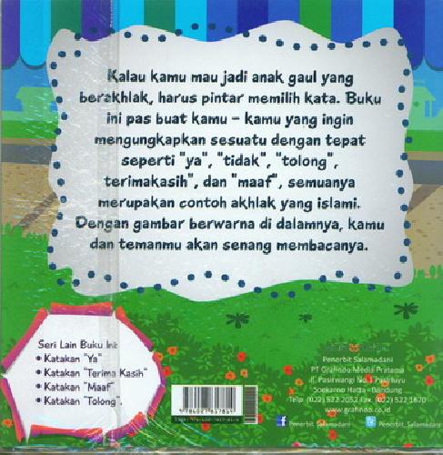 Kalau kamu mau jadi anak gaul yang berakhlak, harus pintar memilih kata. Buku ini pas buat kamu-kamu yang ingin mengungkap sesuatu dengan tepat seperti "ya", "tidak", "tolong", "terimakasih", dan maaf, semuanya merupakan contoh akhlak yang islami. Dengan gambar berwarna di dalamnya, kamu dan temanmu akan senang membacanya.
