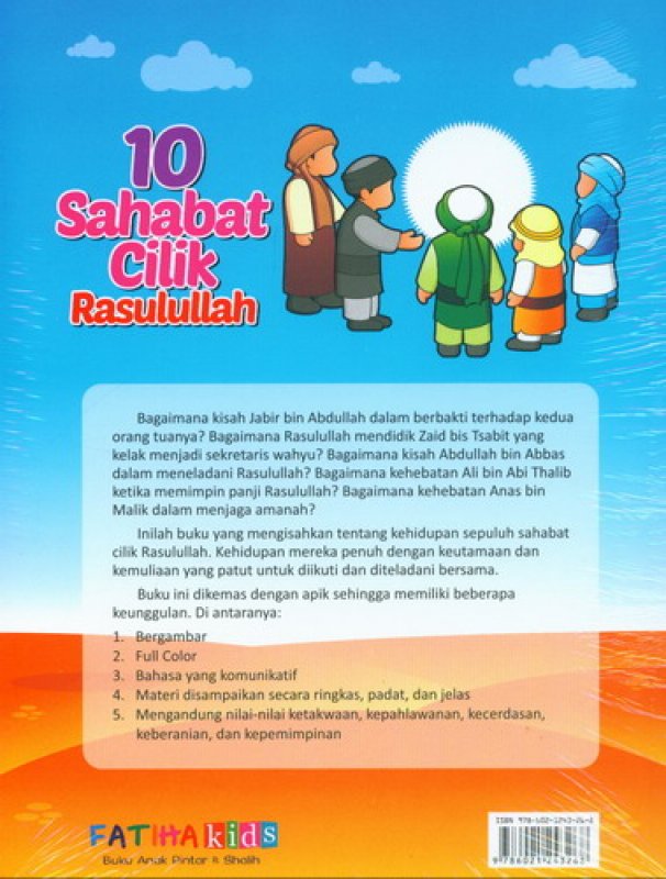 Inilah buku yang mengisahkan tentang kehidupan sepuluh sahabat cilik Rasulullah. Kehidupan mereka penuh dengan keutamaan dan kemuliaan yang patut untuk diikuti dan diteladani bersama. Buku ini dikemas dengan apik sehingga memiliki beberapa keunggulan. Di antaranya: