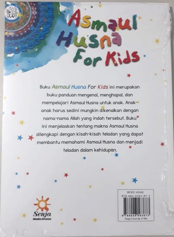 Buku Asmaul Husna For Kids ini merupakan buku panduan mengenal, menghapal, dan mempelajari Asmaul Husna untuk anak. Anak-anak harus sedini mungkin dikenalkan dengan nama-nama Allah yang indah tersebut. Buku ini menjelaskan tentang makna Asmaul Husna dilengkapi dengan kisah-kisah teladan yang dapat membantu memahami Asmaul Husna dan menjadi teladan dalam kehidupan.