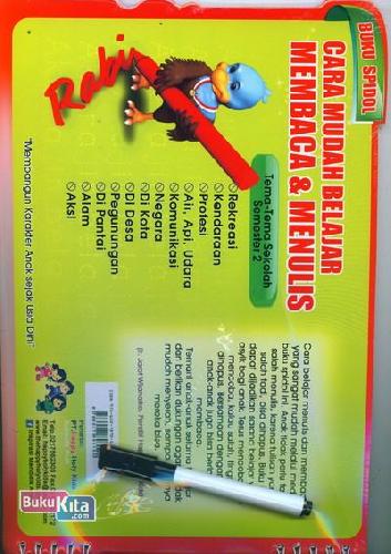 Cara belajar menulis dan membaca yang sangat mudah melalui media buku spidol ini. Anak tidak perlu takut salah menulis, karena tulisan yang salah tadi, bisa dihapus. Buku ini dapat dijadikan sarana belajar yang asyik bagi anak. Terus mencoba dan mencoba, kalau salah, tinggal dihapus. Bersamaan dengan itu, anak-anak juga bisa berlatih membaca.