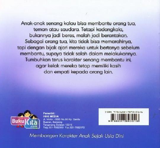 Anak-anak senang kalau bisa membantu orang tua, teman atau saudara. Tetapi kadangkala, bukannya jadi beres, malah jadi berantakan. Sebagai orang tua, kita tidak bisa memarahinya, tapi dengan bijak ajari mereka untuk bertanya sebelum membantu, supaya tidak salah dalam melakukannya. Tumbuhkan terus karakter senang membantu ini, agar kelak mereka tetap memiliki kasih dan empati kepada orang lain.