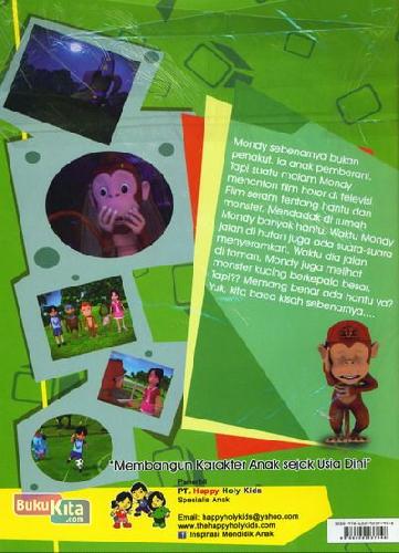 Mondy sebenarnya bukan penakut. Ia anak pemberani, tapi suatu malam Mondy menonton film horor di televisi. Film serm tentang hantu dan monster. Mendadak di rumah Mondy banyak hantu. Waktu Mondy jalan di hutran juga ada suara-suara menyeramkan. Waktu dia jalan di taman, Mondy juga melihat monster kucing berkepala besar.