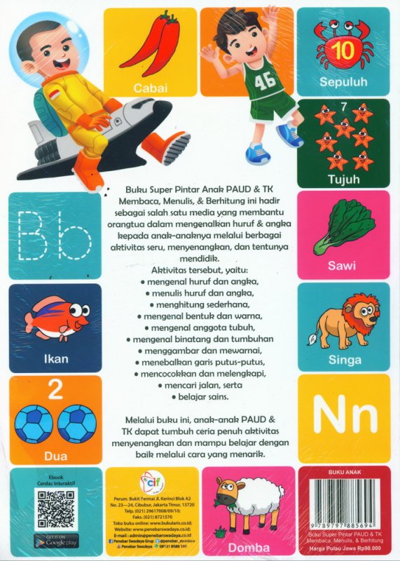 Bubu Super Pintar Anak PAUD & TK Membaca, Menulis, & Berhitung ini hadir sebagai salah satu media yang membantu orangtua dalam mengenalkan huruf & angka kepada anak-anaknya melalui berbagai aktivitas seru, menyenangkan, dan tentunya