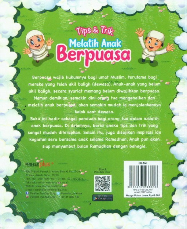 kelak saat dewasa. Buku ini hadir sebagai panduan bagi orang tua dalam melatih anak berpuasa. Di dalamnya, berisi aneka tips dan trik yang sangat mudah diterapkan. Selain itu, juga disajikan inspirasi ide kegiatan seru bersama anak selama Ramadhan. Anak pun akan siap menyambut bulan Ramadhan dengan bahagia.
