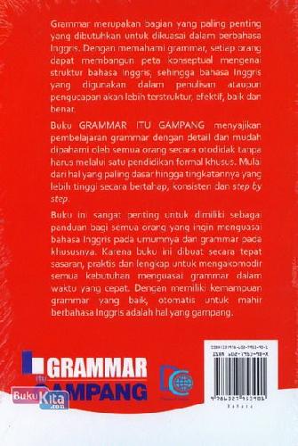 Buku GRAMMAR ITU GAMPANG menyajikan pembelajaran grammar dengan detail dan mudah dipahami oleh semua orang secara otodidak tanpa harus melalui satu pendidikan formal khusus. Mulai dari hal yang paling dasar hingga tingkatannya yang lebih tinggi secara bertahap, konsisten dan step by step.