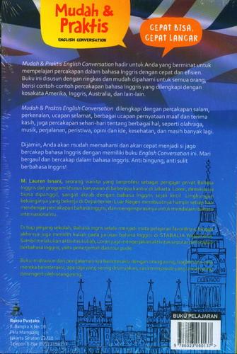 Mudah & Praktis English Conversation dilengkapi dengan percakapan salam, perkenalan, ucapan selamat, berbagai ucapan pernyataan maaf dan terima kasih, juga percakapan sehari-hari tentang berbagai hal, seperti olahraga, musik, perjalanan, peristiwa, opini dan ide, kesehatan, dan masih banyak lagi.