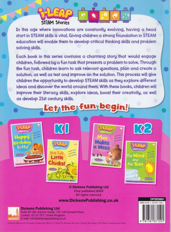 Each book in this series contains a charming story that would engage children, followed by a fun task that presents a problem to solve. Through the fun task, children learn to ask relevant questions, plan and create a solution, as well as test and improve on the solution. This process will give children the opportunity to develop STEAM skills as they explore different ideas and discover the world around them. With these books, children will