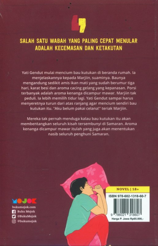 Yati Gendut mulai mencium bau kutukan di beranda rumah, la menjelaskannya kepada Marjiin, suaminya. Baunya mengandung sedikit amis ikan mati yang sudah berumur tiga hari, karat besi dan aroma cacing gelang yang kepanasan. Porsi terbanyak adalah aroma kenanga dicampur mawar. Marjiin tak peduli, la lebih memilih tidur lagi. Yati Gendut sampai harus menyeretnya turun dari atas ranjang agar mencium sendiri bau kutukan itu. "Aku belum pakai celana!" teriak Marjiin.