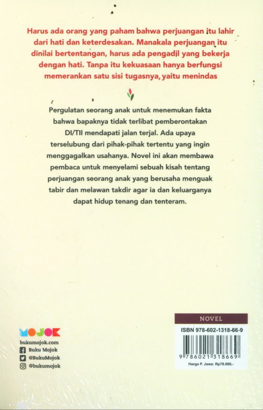 Pergulatan seorang anak untuk menemukan fakta bahwa bapaknya tidak terlibat pemberontakan DI/TII mendapati jalan terjal. Ada upaya terselubung dari pihak-pihak tertentu yang ingin menggagalkan usahanya. Novel ini akan membawa pembaca untuk menyelami sebuah kisah tentang perjuangan seorang anak yang berusaha menguak tabir dan melawan takdir agar ia dan keluarganya dapat hidup tenang dan tenteram.