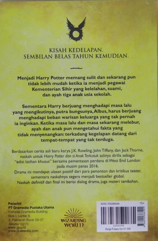 Menjadi Harry Potter memang sulit dan sekarang pun tidak lebih mudah ketika ia menjadi pegawai Kementerian Sihir yang kelelahan, suami, dan ayah tiga anak usia sekolah.