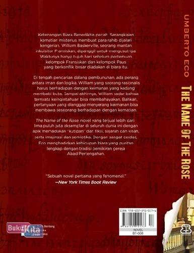 The Name of the Rose, novel yang terjual lebih dari lima puluh juta eksemplar di seluruh dunia ini dengan apik memadukan kutipan dan fiksi, sejarah dan kisah, serta imajinasi dan semiotika. Dengan sangat cerdas, Eco menghadirkan kehidupan biara yang puritan lengkap dengan tradisi pemikiran gereja Abad Pertengahan.