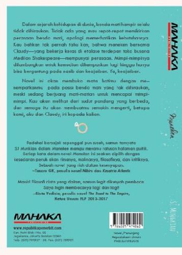 Dalam sejarah kehidupan di dunia, benda mati hampir selalu tidak dihiraukan. Tidak ada yang mau repot-repot memikirkan perasaaan benda mati, apalagi memerhatikan kebutuhannya. Kau bahkan tak pernah tahu kan, bahwa maneken bernama Claudy---yang bekerja keras di etalase terdepan toko busana Medilan Shakespeare---mempunyai perasaan. Mimpi-mimpinya dilambungkan untuk kemudian dihempaskan lagihingga hanya bisa bergantung pada nasib dan keajabiban. Ya, keajaiban.