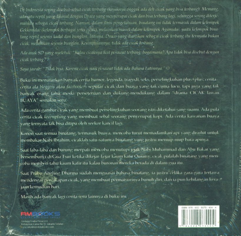 Buku ini menuturkan banyak cerita humor, legenda, tragedi,sek, perselingkuhan plus+plus; cerita-cerita ala blogger atau facebookers seputar cicak dan buaya, yang tak Cuma lucu tapi juga yang tak banyak orang tahu meski perseteruan dan dukung-mendukung dalam drama cicak lawan buaya semakin seru.