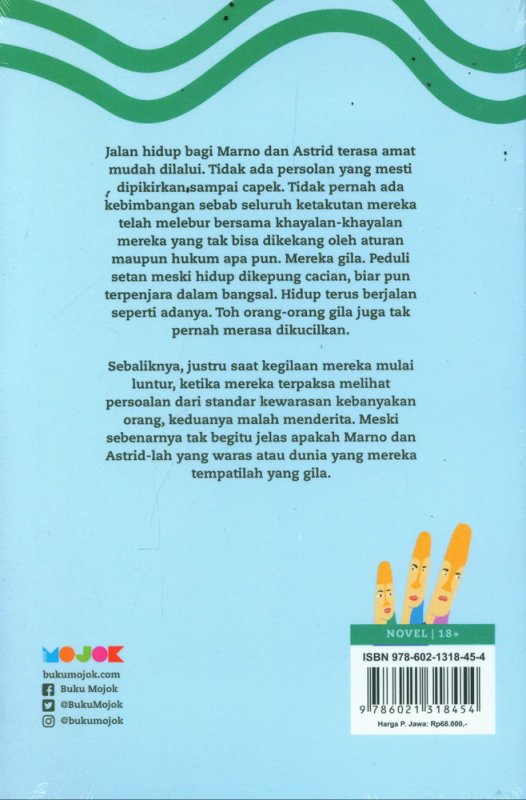 Jalan hidup bagi Marno dan Astrid terasa amat mudah dilalui. Tidak ada persoalan yang mesti dipikirkan, sampai capek. Tidak pernah ada kebimbangan sebab seluruh ketakutan mereka telah melebur bersama khayalan-khayalan mereka yang tak bisa dikekang oleh aturan maupun hukum apa pun. Mereka gila. Peduli setan meski hidup dikepung cacian, biar pun terpenjara dalam bangsal. Hidup terus berjalan seperti adanya. Toh orang-orang gila juga tak pernah merasa dikucilkan.