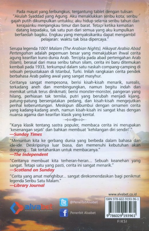 Serupa legenda 1001 Malam (The Arabian Nights), Fantasi Arabia Abad Pertengahan adalah penemuan besar yang menakjubkan ihwal cerita agung kearifan kuno dunia Arab. Tercipta pada abad pertengahan Arab (Islam), berasal dari masa seribu tahun silam, cerita ini baru ditemukan kembali pada 1933, terkumpul dalam satu naskah compang-camping di sebuah perpustakaan di Istanbul, Turki. Inilah rangkaian cerita pendek berbahasa Arab paling awal yang sangat masyhur.