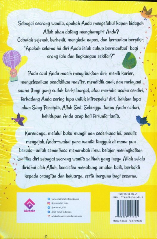 akan Sang Pencipta, Allah Swt Sehingga, tanpa Anda sadari, kehidupan Anda acap kali terlunta-lunta. Karenanya, melalui buku mungil nan sederhana ini. penulis mengajak Anda-wahai para wanita tangguh di manapun beradauntuk senantiasa menambah ilmu, belajar meningkatkan kualitas diri sebagai seorang wanita salihah yang insya Allah selalu diridhai oleh Allah, konsisten menabung amalan baik. berbakti kepada orangtua dan keluarga, serta berguna bagi sesama.
