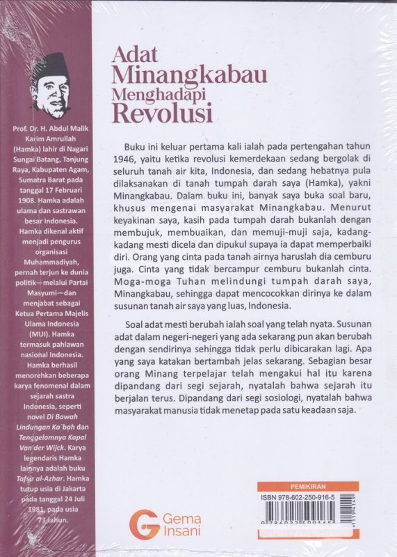 Buku ini keluar pertama kali ialah pada pertengahan tahun 1946, yaitu ketika revolusi kemerdekaan sedang bergolak di seluruh tanah air kita, Indonesia, dan sedang hebatnya pula dilaksanakan di tanah tumpah dara saya (Hamka), yakni Minangkabau. Dalam buku ini, banyak saya buka soal baru, khusus mengenai masyarakat Minangkabau. Menurut keyakinan saya, kasih pada tumpah darah bukanlah dengan membujuk, membuaikan, dan memuji-muji saja, kadang-kadang mesti dicela dan dipukul supaya ia dapat memperbaiki diri. Orang yang cinta pada tanah airnya haruslah dia cemburu juga. Cinta yang tidak bercampur cemburu bukanlah cinta. Moga-moga Tuhan melindungi tumpah darah saya, Minangkabau, sehingga dapat mencocokkan dirinya ke dalam susunan tanah air saya yang luas, Indonesia.