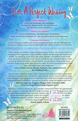 "Not a Perfect Wedding adalah cerita romance tentang pernikahan yang akan membawa pembacanya menikmati rol/er coaster emosi. Interaksf Raina yang manja dengan Pram yangdewasa membuat saya tidak bisa berhenti membaca sampai halaman terakhirnya. Sebuah karya debut yang menjanjikan dari Asri."