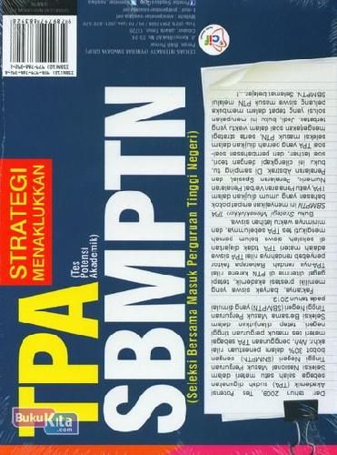 Buku Strategi Menaklukkan TPA SBMPTN ini menyajikan empat pokok bahasan yang umum diujikan dalam TPA, yaitu PenalaranVerbal, Penalaran Numerik, Penalaran Spasial, dan Penalaran Abstrak. Di samping itu, buku ini dilengkapi dengan teori, soal latihan, dan pembahasan soal- soal TPA yang pernah diujikan dalam seleksi masuk PTN, serta strategi mengerjakan soal dalam waktu yang terbatas. Jadi, buku ini merupakan solusi yang tepat dalam membuka peluang siswa masuk PTN melalui SBMPTN. Selamat belajar....!