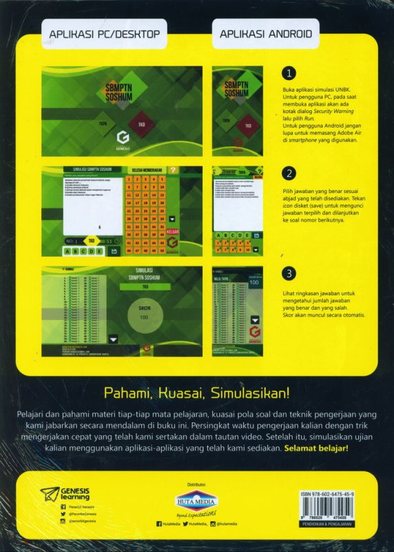 Pelajari dan pahami materi tiap-tiap mata pelajaran, kuasai pola soal dan teknik pengerjaan yang kami jabarkan secara mendalam di buku ini. Persingkat waktu pengerjaan kalian dengan trik mengerjakan cepat yang telah kami sertakan dalam tautan video. Setelah itu, simulasikan ujian kalian menggunakan aplikasi-aplikasi yang telah kami sediakan. Selamat belajar!