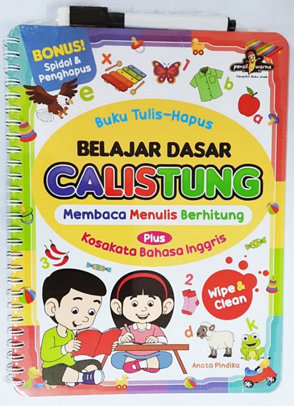 Buku Tulis-Hapus Belajar Dasar Calistung adalahCara paling efektif mengajarkan anak calistung kepada anak adalah dengan terus melakukang pengulangan, buku ini sangat istimewa karena menggunakan konsep buku tulis-hapus. Anak bisa mengulang-ulang materi membaca menulis dan berhitung, sehingga lama-kelamaan anak bertambah mahir. Ditambah dengan materi kosakata bahasa inggris, buku ini sangat bermanfaat melatih kecerdasaan anak usia 3 - 7 tahun.