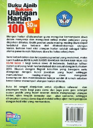 Demi keberhasilan dan tercapainya prestasi yang maksimal, maka kami hadirkan BUKU AJAIB SUKSES ULANGAN HARIAN RAIH NILAI 100 SD/MI kelas 1 bagi semua siswa di Indonesia. Berisikan latihan materi soal yang telah terstandarisasi dan sesuai dengan Kurikulum 2013. Disusun dengan tingkat kesulitan yang beragam serta dilengkapi dengan kunci jawaban yang tepat sehingga memudahkan masing-masing siswa mengasah kemampuan dan membiasakan belajar sendiri di rumah sebelum benar-benar menempuh ulangan harian di kelas.