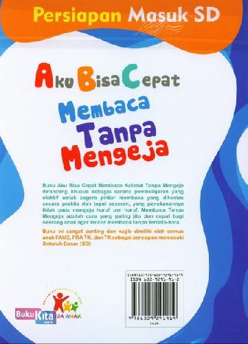 Buku Aku Bisa Cepat Membaca Kalimat Tanpa Mengeja dirancang khusus sebagai sarana pembelajaran yang efektif untuk segera pintar membaca yang dikemas secara praktis dan tepat sasaran, yang penekanannya tidak pada mengeja huruf per huruf. Membaca Tanpa Mengeja adalah cara yang paling jitu dan cepat bagi seorang anak agar lancar membaca tanpa terbata-bata.
